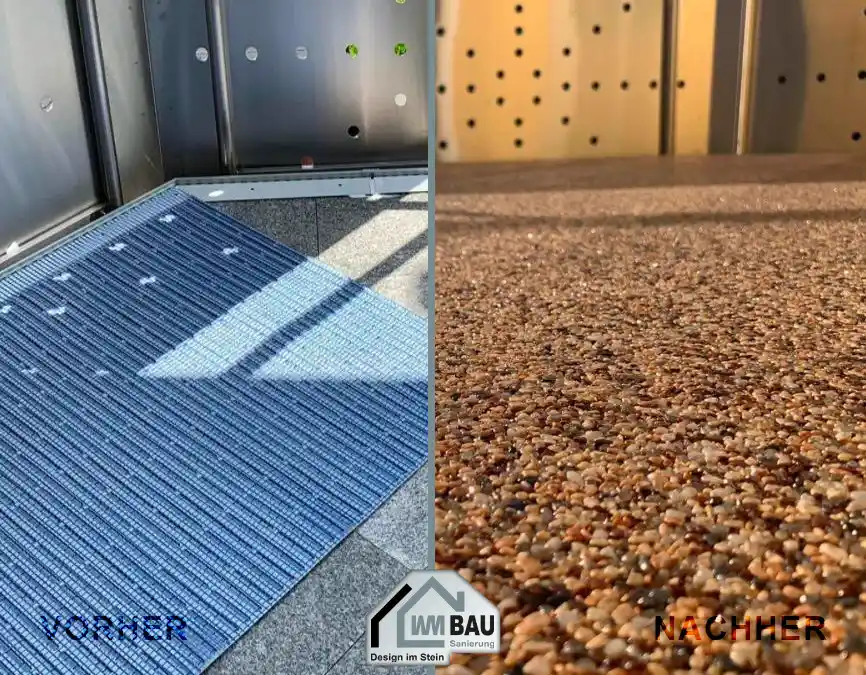 Ob bei der Gestaltung hochwertiger Steinteppiche oder bei umfassenden Sanierungsarbeiten – wir setzen auf Erfahrung, Innovation und Liebe zum Detail, um Ihre Visionen Wirklichkeit werden zu lassen. Unsere fugenlosen Steinteppichlösungen vereinen Ästhetik und Funktionalität und sind ein Highlight in unserem Portfolio.